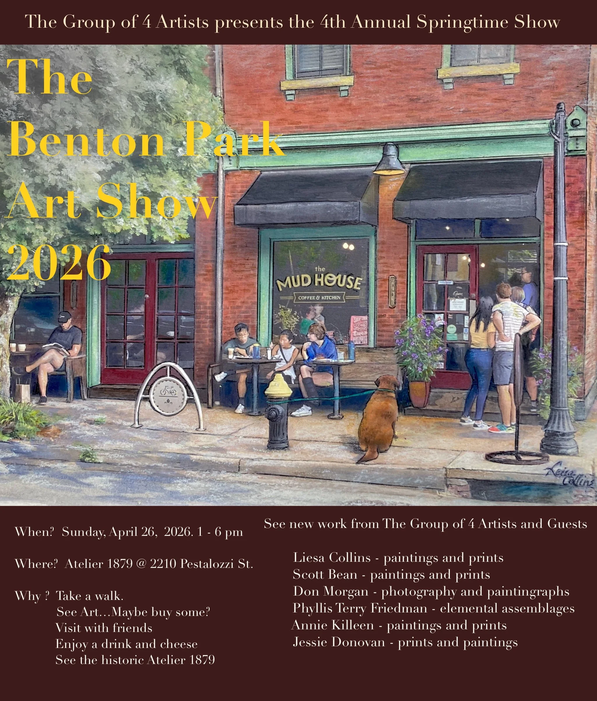 We are neighbors who came to Saint Louis from far away parts of the country. We all found community, creativity, and inspiration in our Benton Park neighborhood. The sights, colors, textures and architecture around us are often reflected in our artwork.